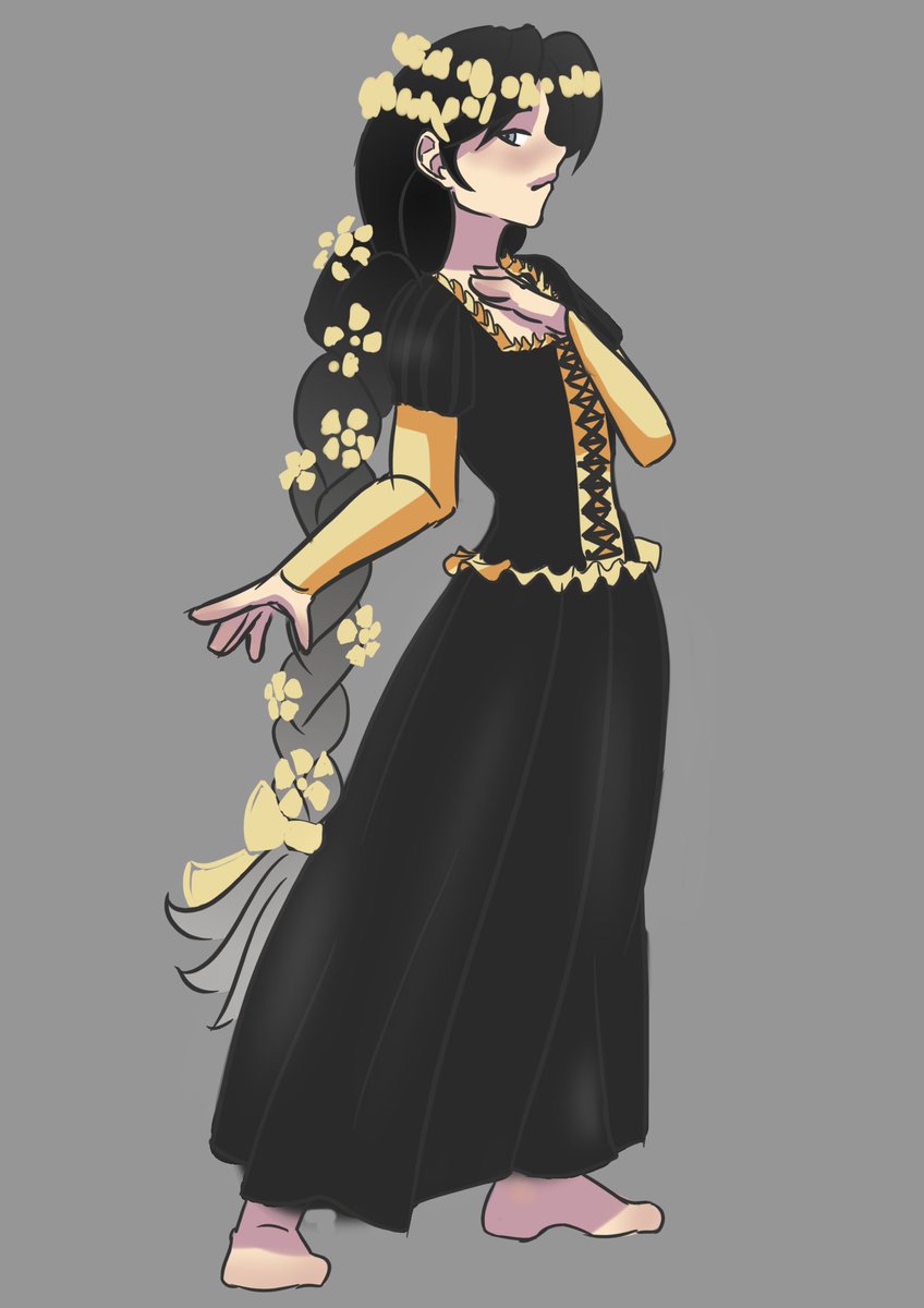 Bom dia! Começando agora de manhã. Eu fiz o desenho, vocês fazem a fic! "Gal de Rapunzel com suas próprias cores temas, preto e amarelo." - 🖤 #Calamidade #CalamidadeFanart