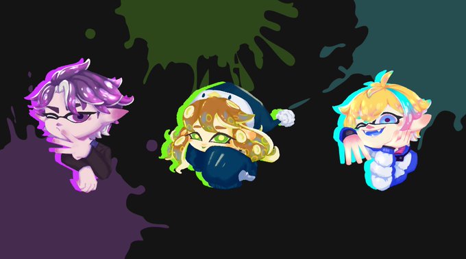 I saw them playing the Splatoon 3 demo and now the official game is out!! so I drew them in the Splatoon artstyle!!🦑 🐙🦑 #Taka_Radjimart #Amicia_MichellArt #Rai_Art