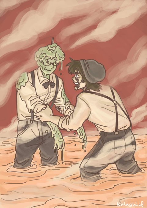 drew a scene from my fic 'creature only'. might make one for every chapter since i like to make myself suffer :DDD archiveofourown.org/works/39446457… #dreamsmpfanart #tommyinnitfanart #wilbursootfanart