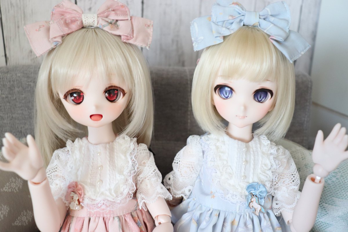 Rosenliaさん(@Rosenlia_doll ) の服で姉妹合わせ~!かわいい!!これがやりたかったのでもう1着買っていたのだ。二人ともfloralgardenさんの子です #floralgarden娘 #MDDはいいぞ