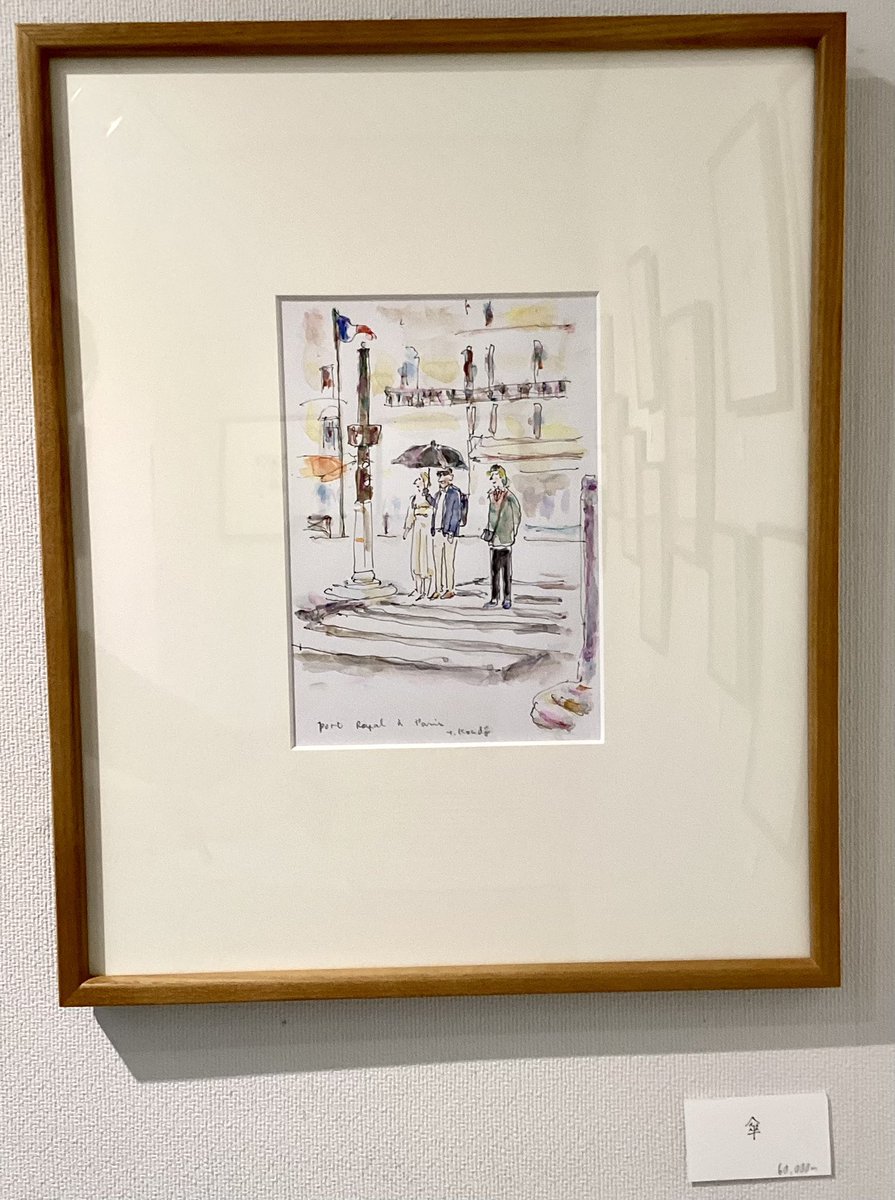 近藤貴洋作品展は今日も近藤先生いらっしゃっています。 こちらは雨のひと時を描いた作品です。フランス国旗がいい感じです。 #水彩 #パリ #スケッチ