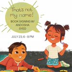 This Saturday, Anoosha Syed (@foxville_art) will be in person to sign copies of her debut picture book That’s Not My Name! Come by in-person to meet her, or order your signed copy on our website ✏️🎒✨ gallerynucleus.com/events/942?mor… #kidlit #illustration #picturebook #signedbook