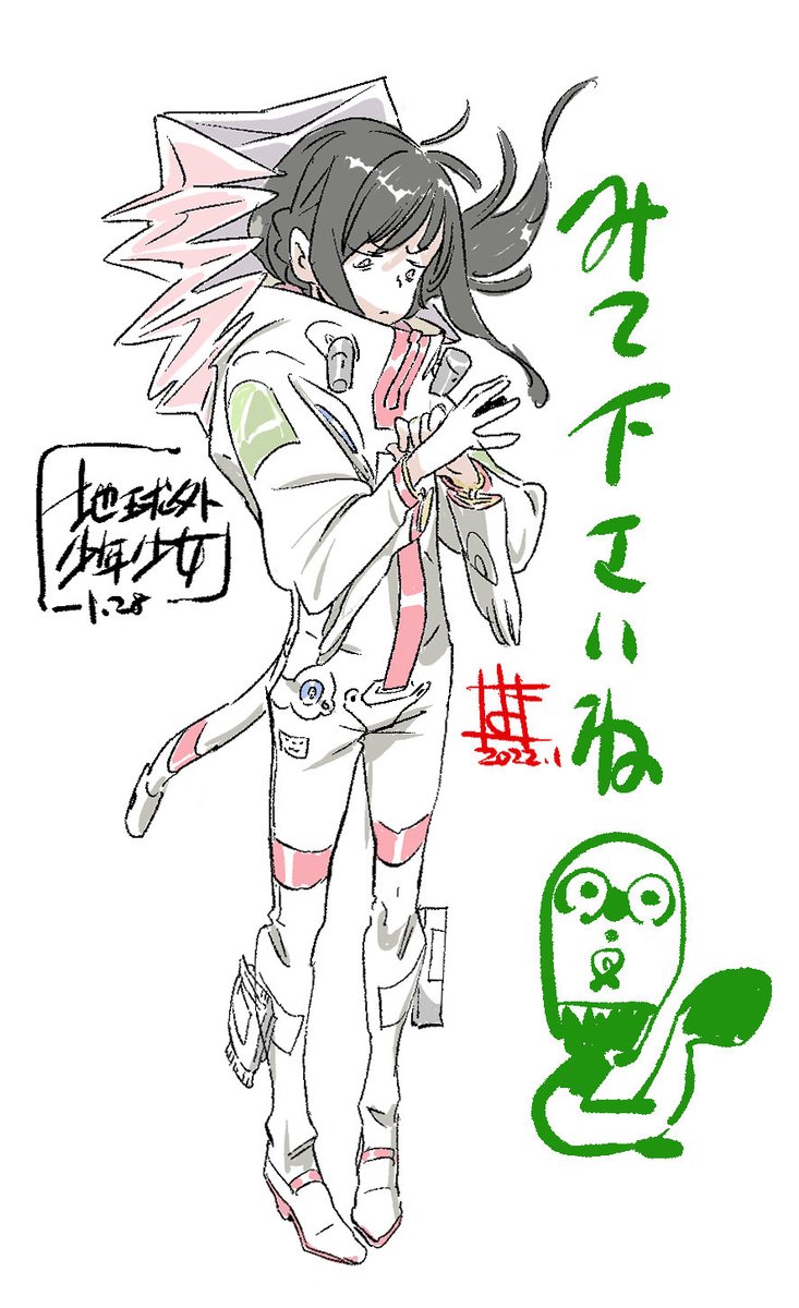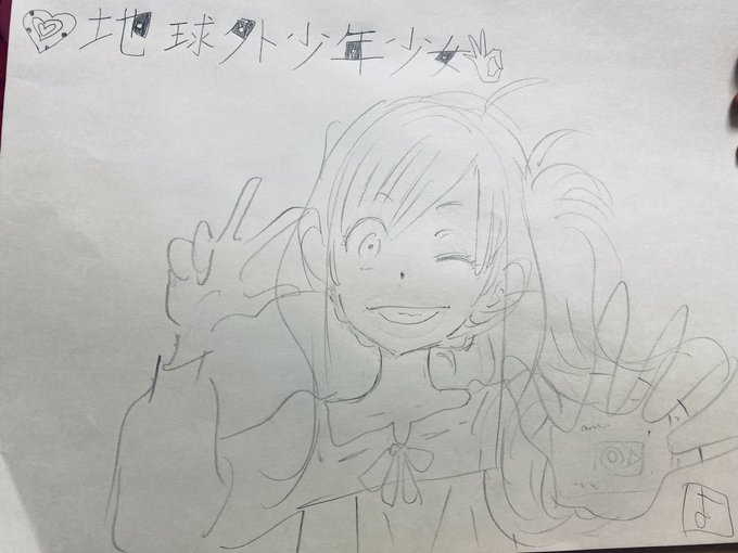 288 1738 地球外少年少女、全話完走した娘に描かされました。 タイトル文字は娘が描きました。^ - ^ 22/02/01 20:01