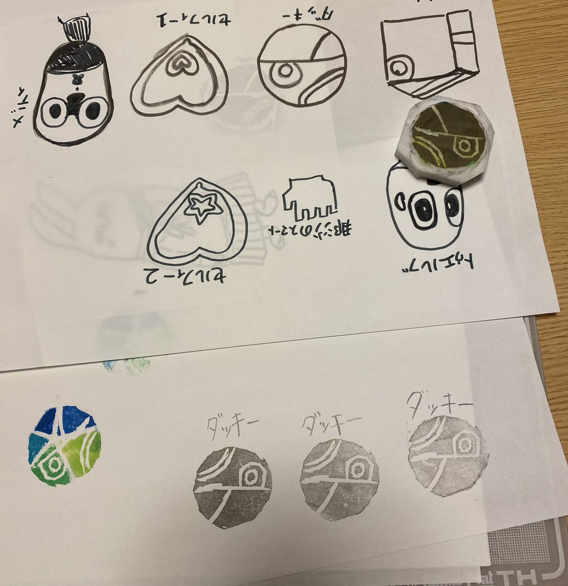 今日は子供がダッキーハンコ作ってました