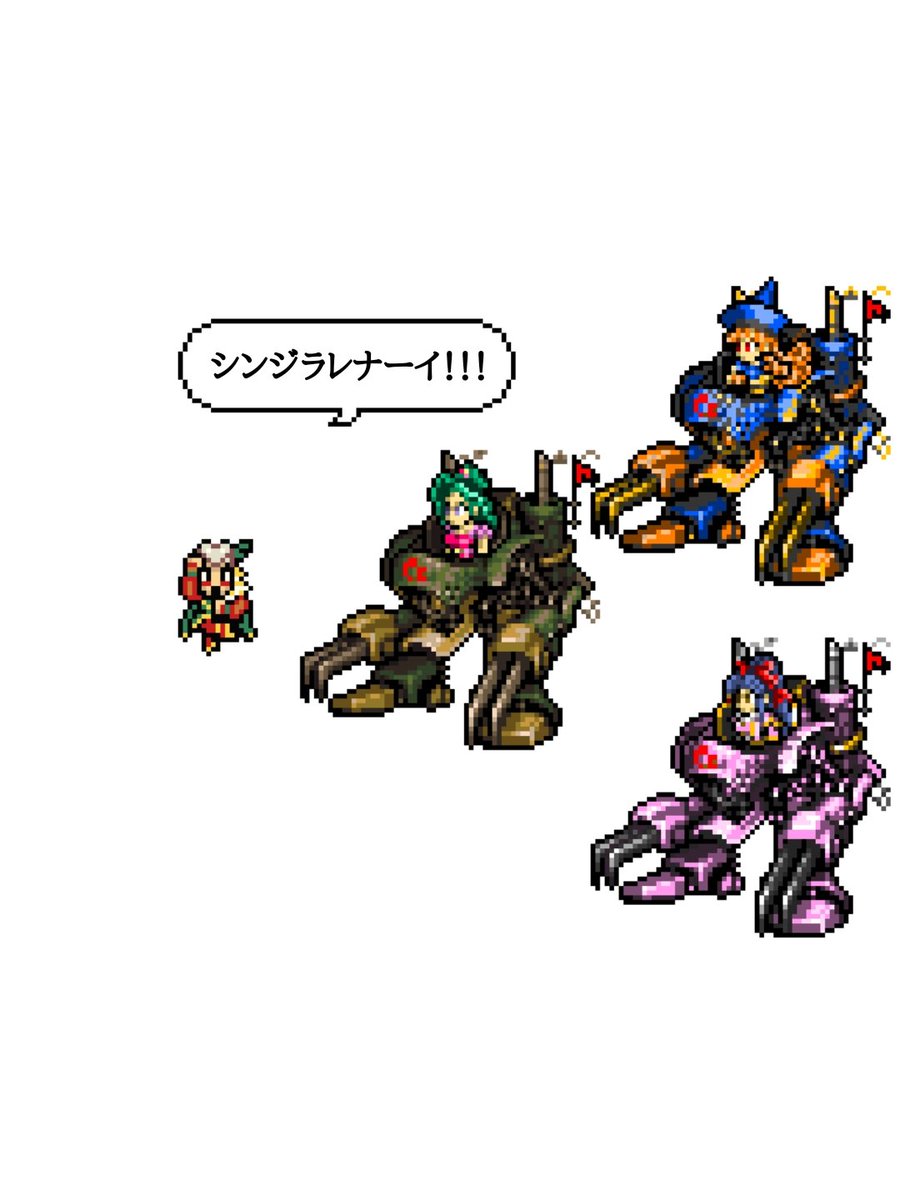 5 11 ケフカ vs ティナ アリーナ 真宮寺さくら 久し振りにドット絵描いたけど、魔導アーマー描くの辛すぎる🙄 #ドット絵 #pixelart #ドラクエ #FF #サクラ大戦 #ロマサガRS 22/03/17 21:52