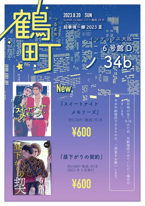 ギリギリにありましたが、8月20日インテのお品書きです〜 ▼スペース 6号館D ノ34b【鶴町】 ▼頒布物 新刊と既刊の2種持って行きます! [新刊]pixiv.net/artworks/11095… [既刊]pixiv.net/artworks/10763… 明日よろしくお願いします〜✌️