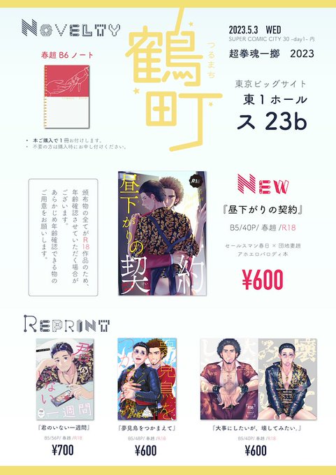 【超拳魂一擲2023】お品書き | ガマ子 pixiv.net/artworks/10764… 5月3日のお品書きです! 本購入の方にはB6ミニノート1冊お付けしますので、ご不要の場合はお申し付けください。