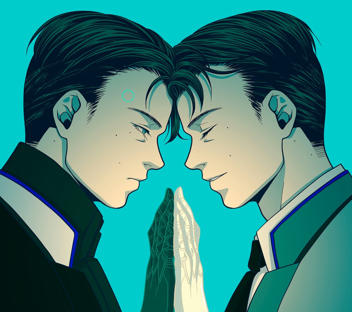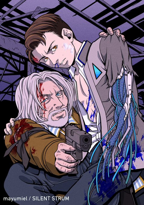昨日の洋ゲーフェスにてネップリ用に発表したイラストです。以前アンケートで募集して1位だったハンコナをテーマに描きました。ブロマンス!ハードボイルド!メカバレ!と大好き要素てんこ盛りにしました。 #DetroitBecomeHuman