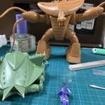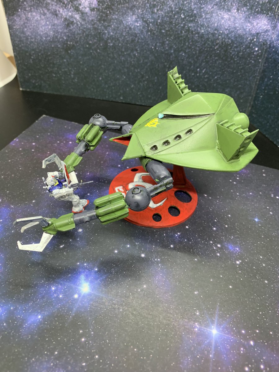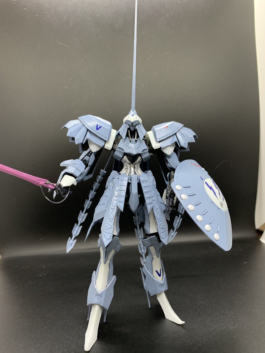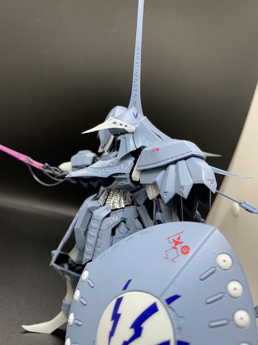 ここんとこずっと作ってた、VOLKS の1/144 ザ・バング(破烈の人形)。 とりあえず完成です。 どこまで手抜きで作れるか挑戦してみましたが、パーツ取れやすいし、手を抜いても塗装は大変でしたが、満足ですw #第4回がんばらないガンプラ交流会 #今月作ったプラモ晒そうぜ #おガンばな