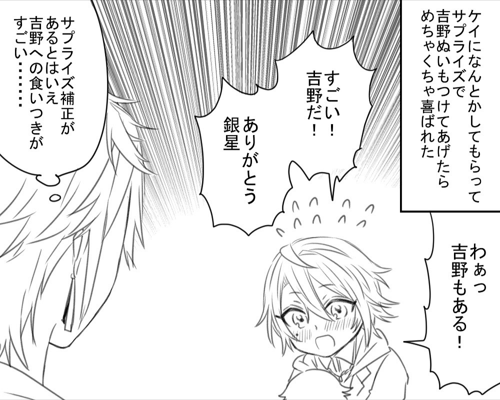 『メノウの即興劇に巻き込まれるチームP』、現在のメンバー編をいつか描きたいね(銀星がいる間に描けなかったのが悔やまれる)