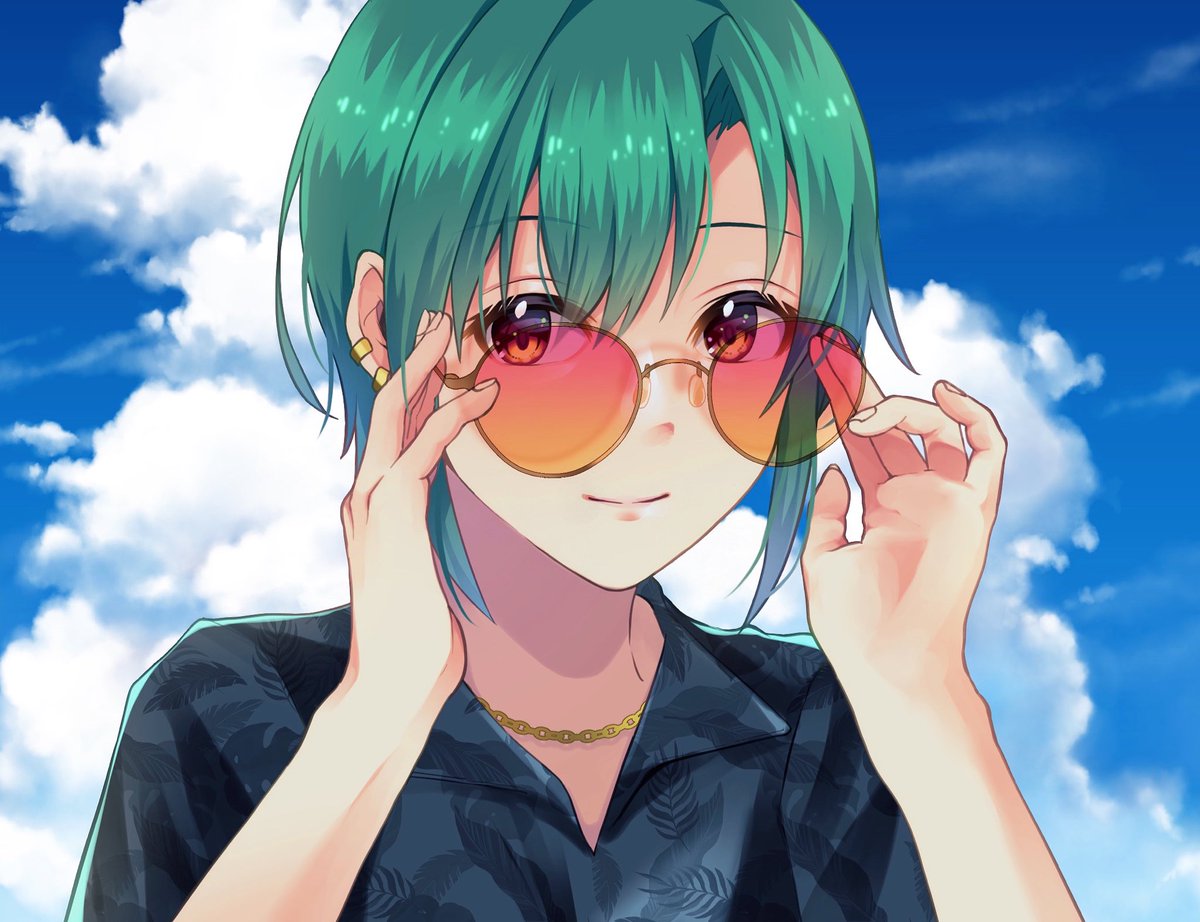 新衣装緑仙やっと描いたんだあ(眼鏡割愛) 待ってるよ #緑仙はやく見ろ