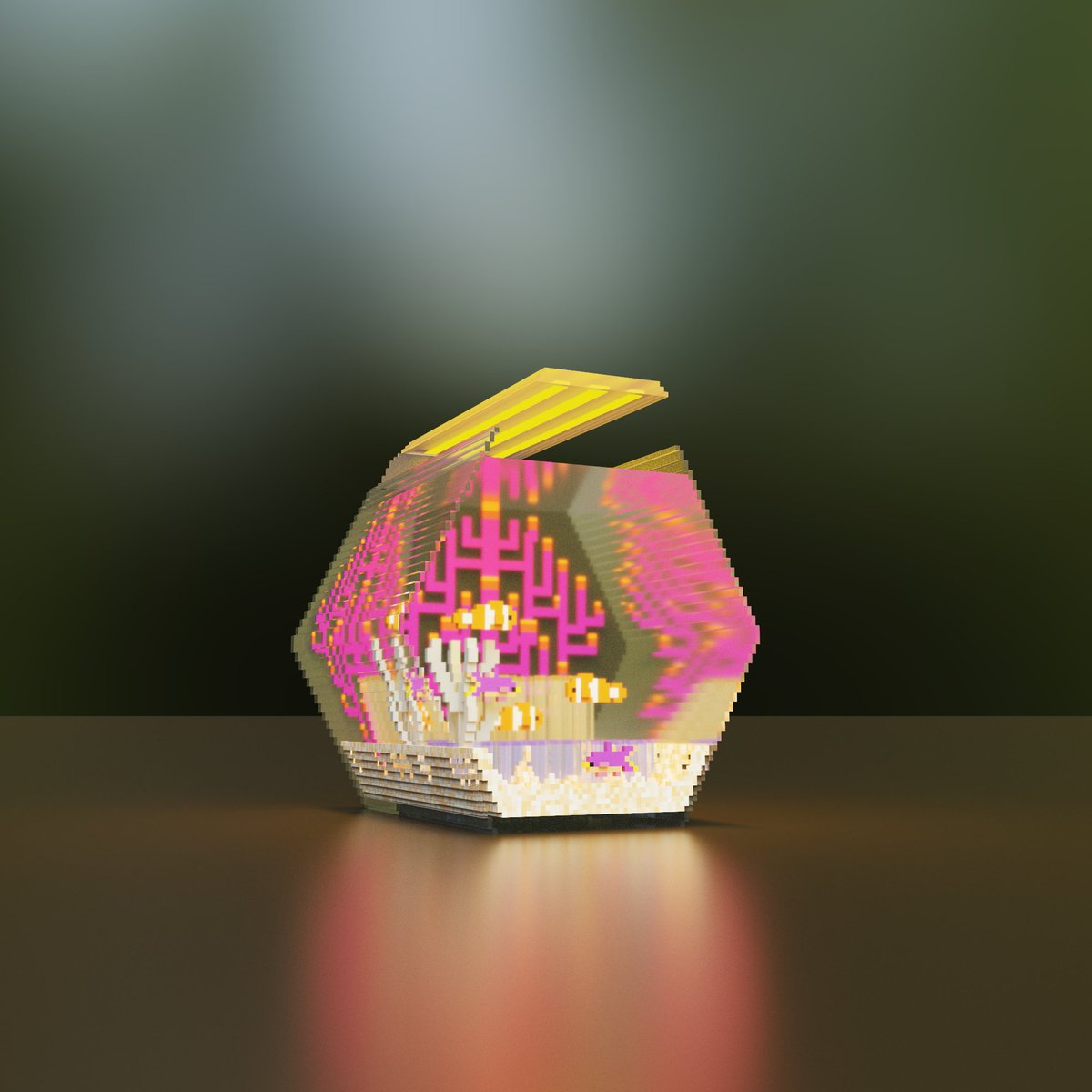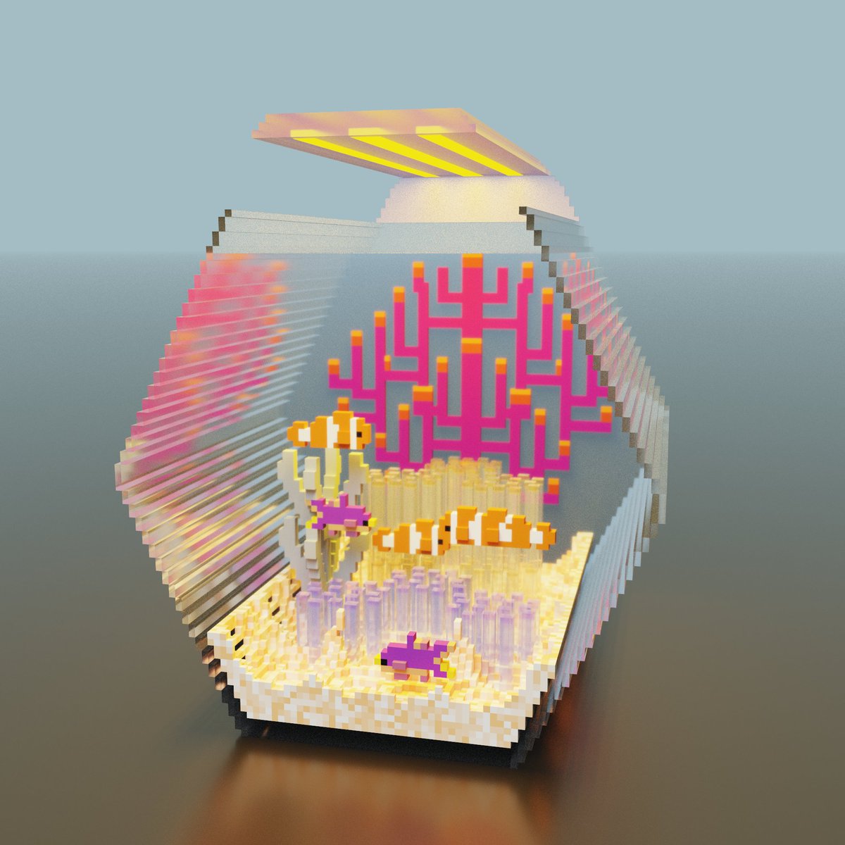 ボクセルアート中級編 完成しました! おさかな泳ぐ水槽です🐡 今回のでだいぶ色々覚えることができたので、自分の作りたいものにも大いに活かせそうです! 楽しかったー!! #voxelart #ボクセルアート上達コレクション #いつきおボクセル