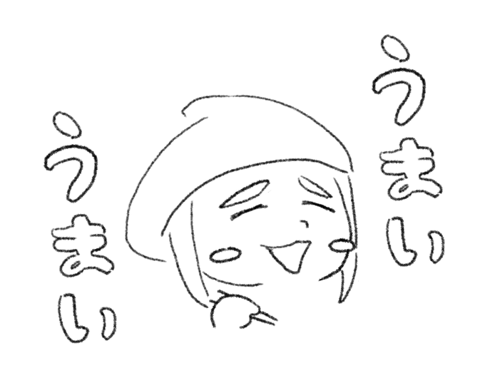 1 28 「うまいうまい」だけでスタンプひとつぶんのパワーがある #蛇崩好絵 22/05/04 10:41