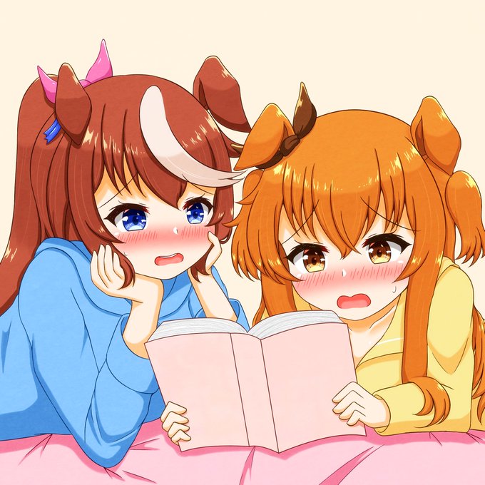 pixivリクエストで「少女マンガ雑誌を読んで赤面しているテイオーとマヤノ」を描かせていただきました 雑誌デザインがうまくいかなかったのでこちらは差分のほう pixiv.net/artworks/10622… #ウマ娘 #トウカイテイオー #マヤノトップガン