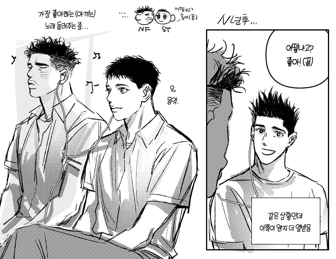계속 생각나고 정말 너무 좋아서... 팬심에 그려버렸습니다... 🥹 혹시 불편하시면 바로 내리도록 하겠습니다!! 태협 썰이 너무 아름다워요... twitter.com/holdonyoubreat…