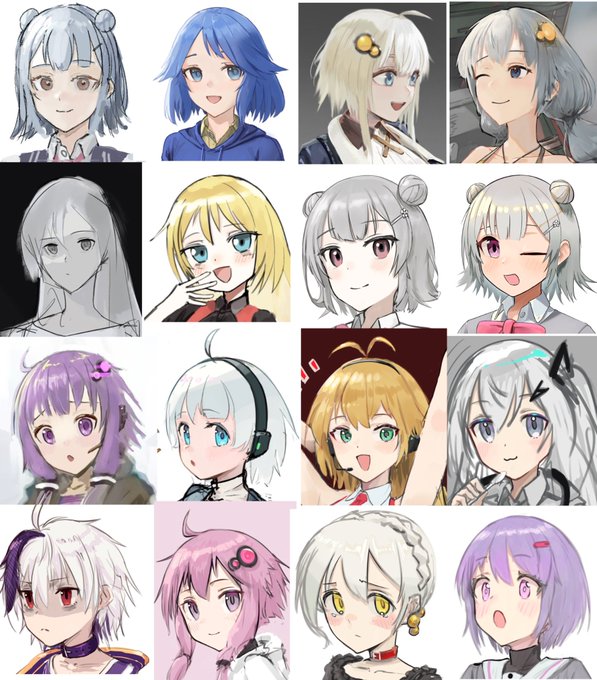 おおよそここ8ヶ月の成長。六花ちゃんの立ち絵とかここに入ってないけど、茜ちゃん描いたあたりで描き慣れてきた感じする。最初の頃は数週間かけて描き直し続けてたからクオリティが全く安定していない たまに見返すと楽しいな