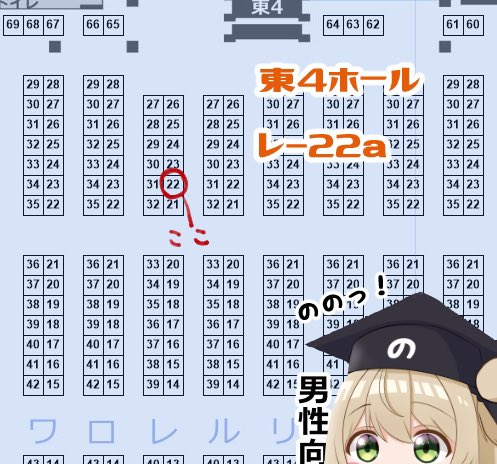 C102のサークル配置はこちらになります 二日目東4ホール レ22-aでお待ちしております☆ ご来場出来ない方は通販も予約開始しております↓ twitter.com/ganba_rikki/st…