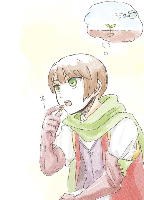 おやつに持ってきたナッツ類を食べながらこれは植えたら栽培できるのだろうかなどと考えているプルソンを描きました