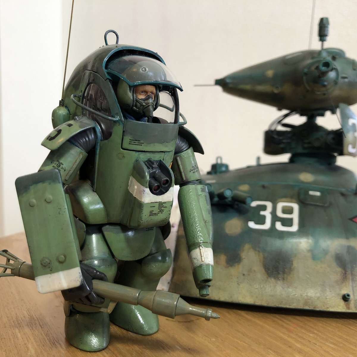 ガチャーネンのフリーゲ、カウツのお供に1/35アルタイルのガレージキットを作っています。各アーマーの厚くなっている所を彫り込んでいく作業が地味に楽しかった。 #マシーネン