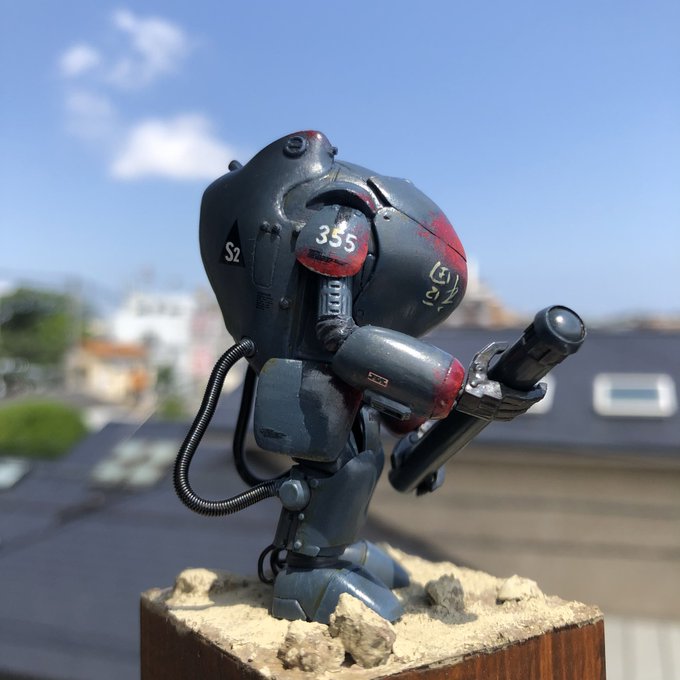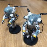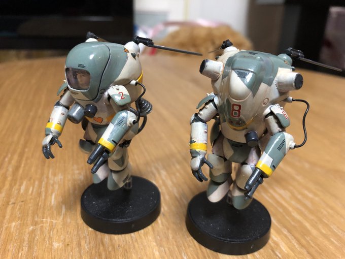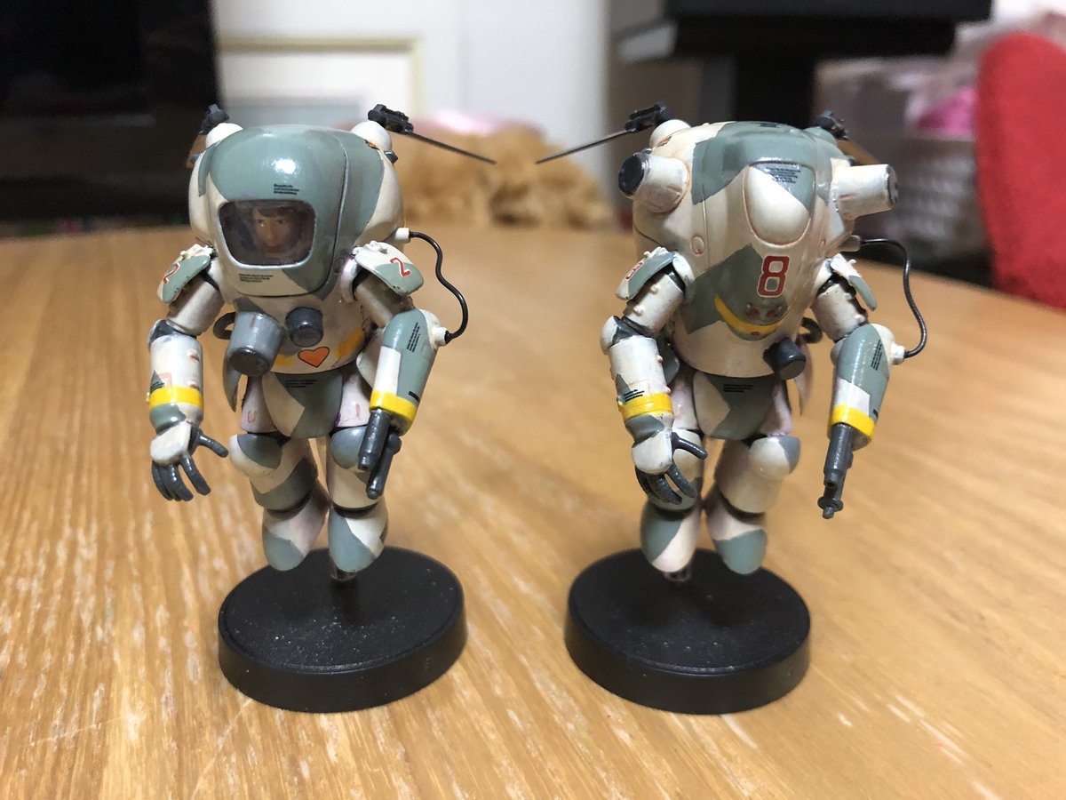 6 61 オスカルとフリードリッヒ作りました。今回は試しにアクリジョンをメインに使ってみました。 オスカルの首折れたり、レーザーの軸折れたり、フリードリッヒの肩のひらひら折れたりボコボコでした。 #マシーネン 20/06/21 15:35