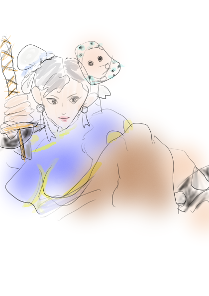 じゃけさん @JakElwood_B_B 、ポイント利用ありがとうございます。 リクエスト通り、 @Eshchan_JP 作 「春麗✕島根✕松居一代」です。お収めくださいm(_ _)m #格ゲーキャラ描こうぜ #春麗 #どじょう掬いまんじゅう #マツイ棒