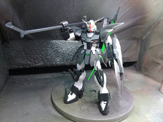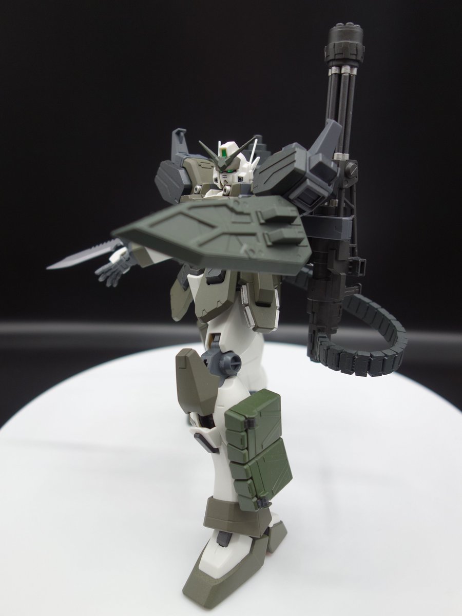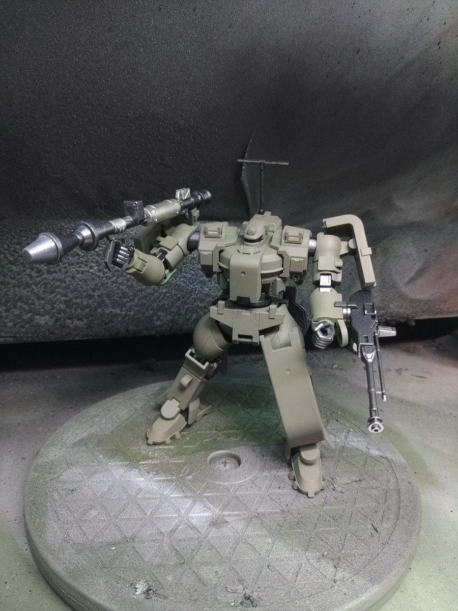 光沢のトップコート吹いたら少し落ち着いたかな 陸上自衛隊ジム マスキングの影響で顔面に塗り残しが出来てしまったので、後で部分塗装しなければ #ガンプラの画像貼るとRTされると聞いて #陸上自衛隊 #陸戦型ジム