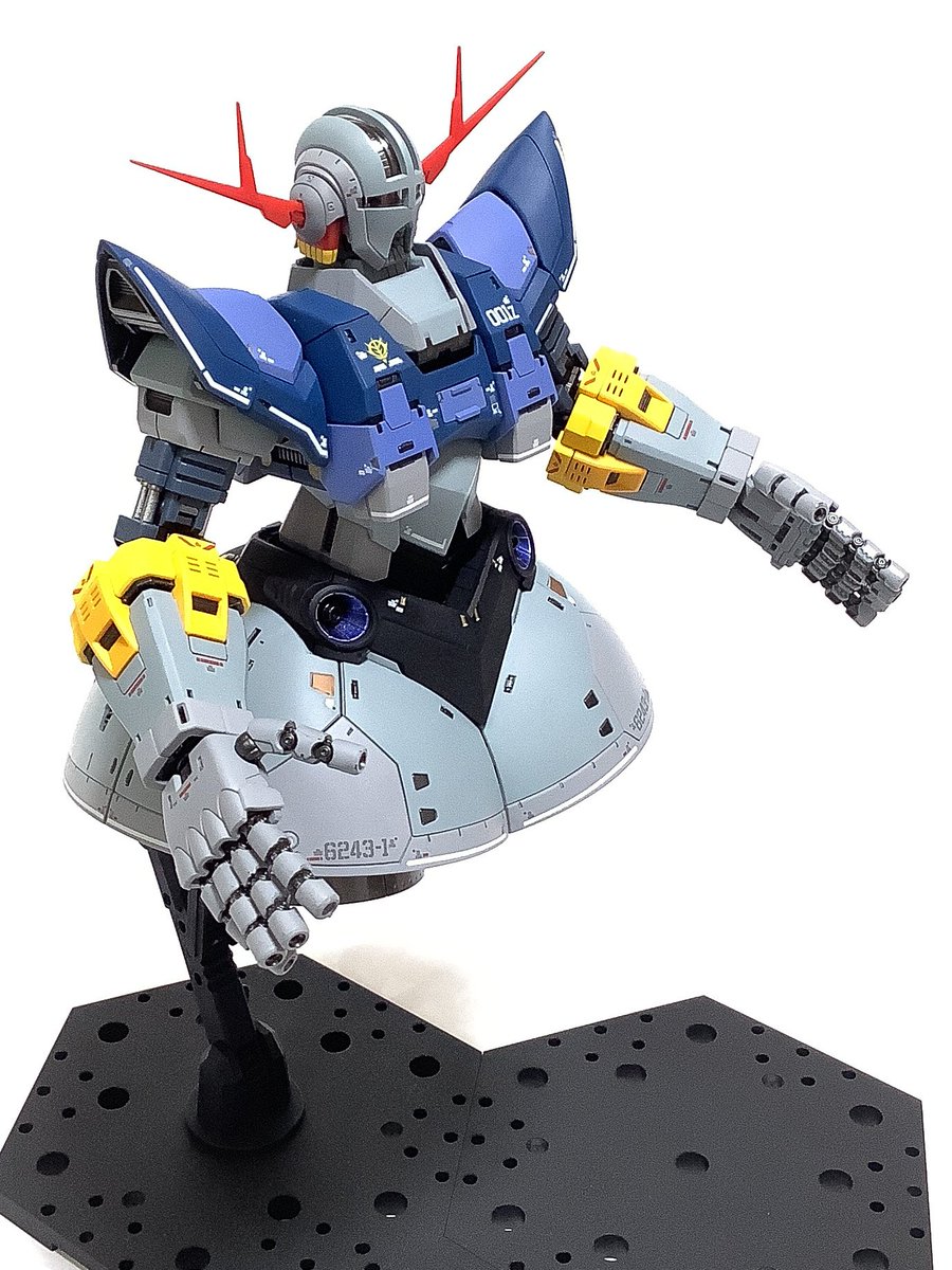 RGジオング完成! 水性ホビーカラーで全塗装しました。 噂のハンドパーツのマスキング地獄は、初使用のマスキングゾルで対応しました。 満足の出来です(*´ω`*) #ガンプラ #ガンプラ好きと繋がりたい #ガンプラの画像を貼るとRTされると聞いて
