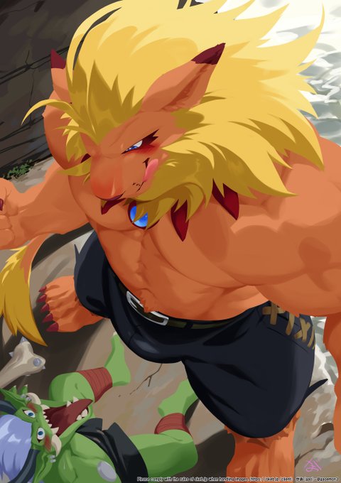960 5515 朝の支度中でもじゃもじゃだけどカメラ向けるとピースしてくれるライオン獣人です。 It is a lion beast man preparing for the morning. 22/08/27 18:00