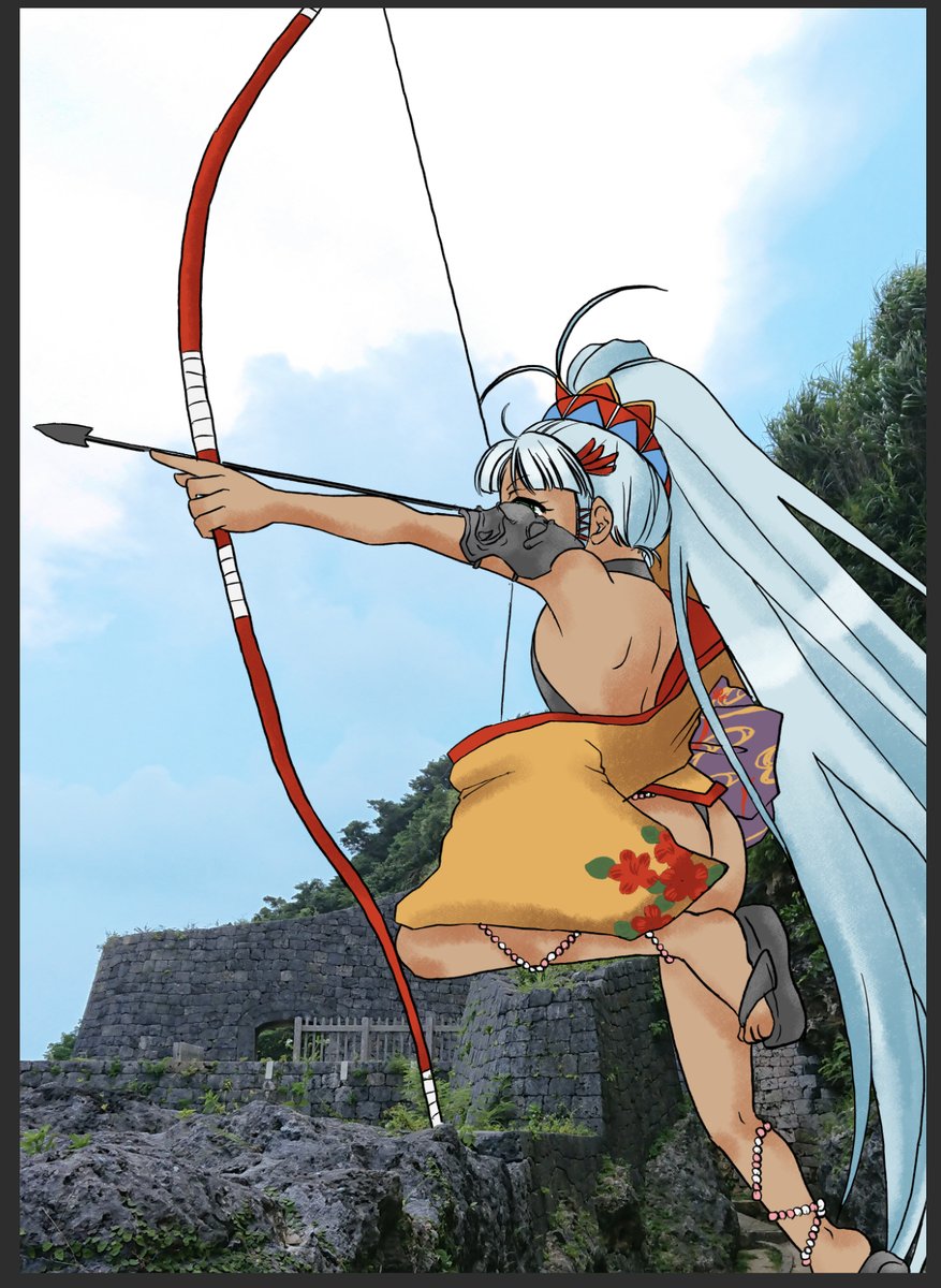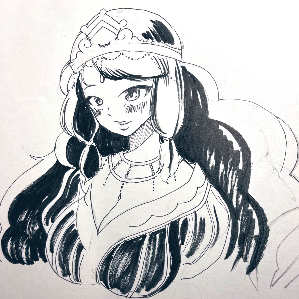#御城プロジェクト版深夜の真剣お絵描き60分一本勝負 原城ちゃん!🏯久しぶりの参加です。アナログならはやいかなと思ってガリガリ描いていたけど、髪を塗るかどうかで悩んでいるうちに時間がきてしまいました。できたしこです☺️