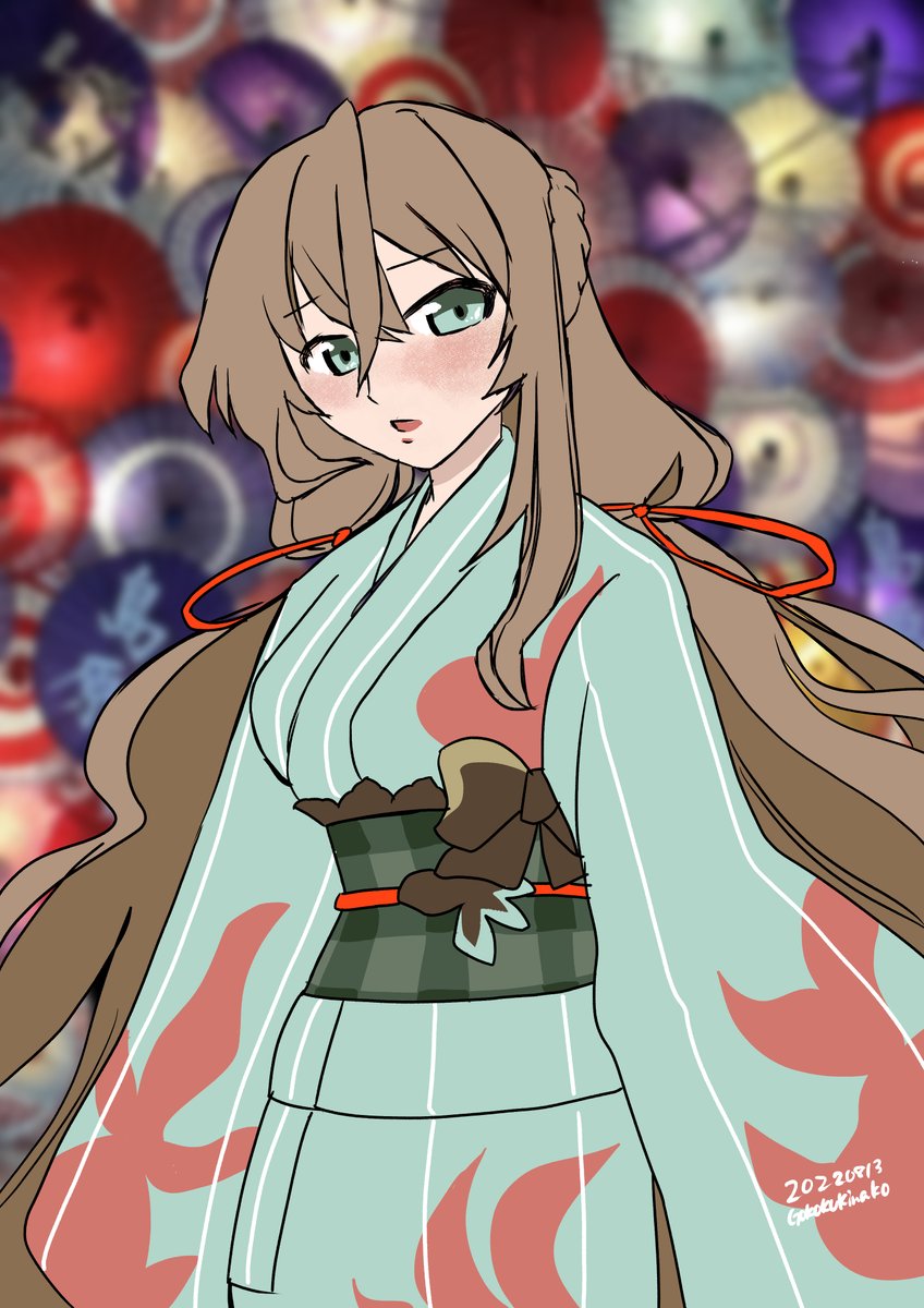 #御城プロジェクト版深夜の真剣お絵描き60分一本勝負 お忍びで土曜夜市に来た殿と島原城、浴衣美人コンテストで盛り上がる会場を抜け出したところで堪えきれず殿への想いを伝える。普段高慢な彼女からは想像もつかないほどの不器用な姿に驚くと、その頬は露店の飴よりも紅く染まっていた(強めの妄想)