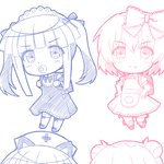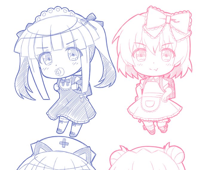 WEB即売会07thフラグメントワールド2で配布するアクスタのイラスト完成しましたー! 両面印刷で表情変化 各10cm 1000円の予定です #07thフラグメントワールド2 えるしっているか ばつげーむいしょう らむだべるんと ふくのいろみがおなじ