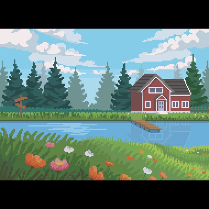 湖畔の家 #ドット絵 #pixelart