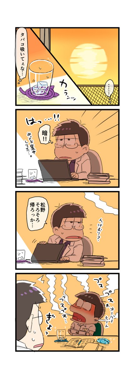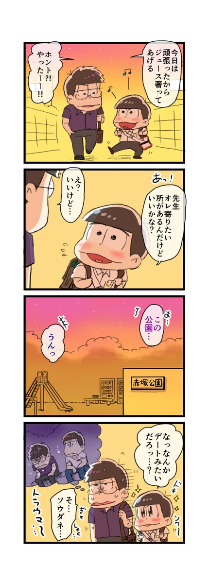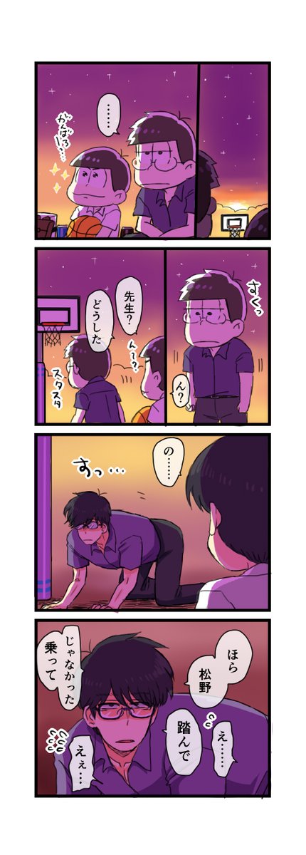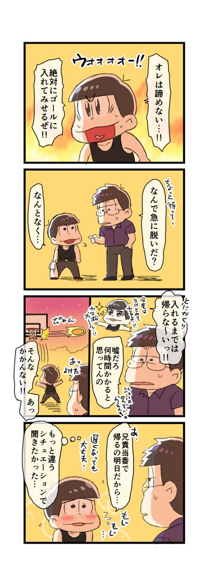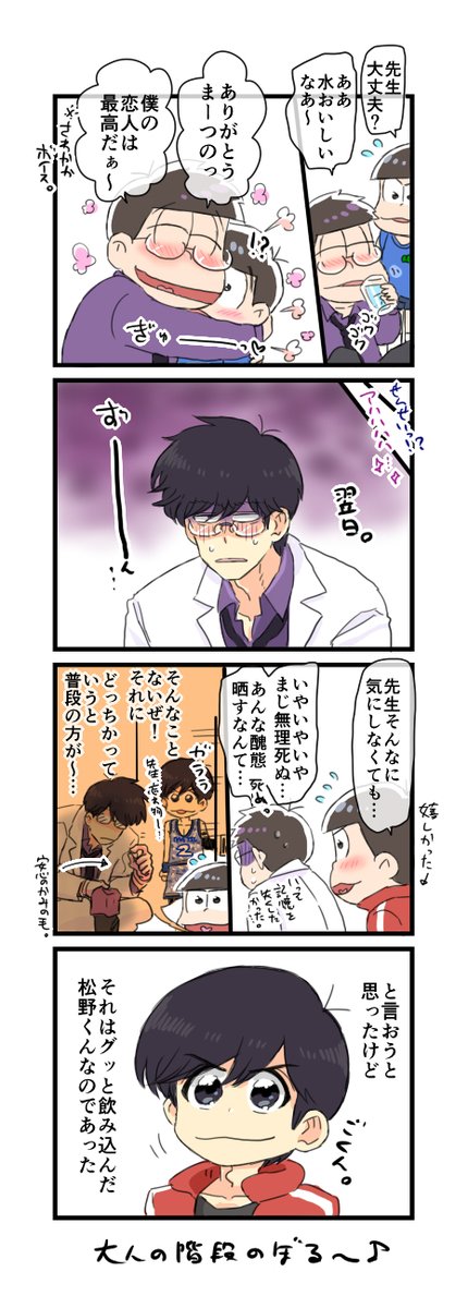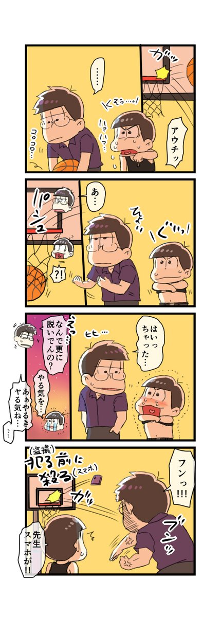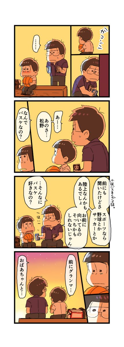 23 265 夏の保バスまんがその5 松野くんが急に脱いでるのは⛄のiwmtくんが某バラエティで脈絡なくシャツを脱いでタンクトップ姿になってたのがとても面白かったからです。 22/07/30 16:40