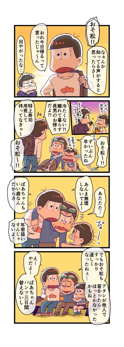 夏の保バスまんがその9 松野くんの着てる服はおばあちゃんのおさがりリメイク。
