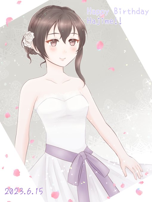 肇ちゃん今年もお誕生日おめでとう💜🎂✨幸子SSRの映り込みはすごくかわいかったけど今年も念願のウェディングドレスは見られなかったので ウェディングドレス妄想絵…!#藤原肇生誕祭2023 #藤原肇誕生祭2023