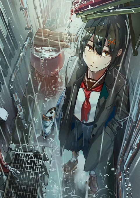 26 111 雨宿り Take shelter from the rain #イラスト #絵描きさんと繋がりたい 23/07/02 18:36