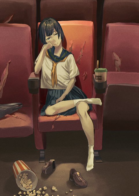 「……つまんねえ映画。」 What the fxxking boring movie. #イラスト #絵描きさんと繋がりたい