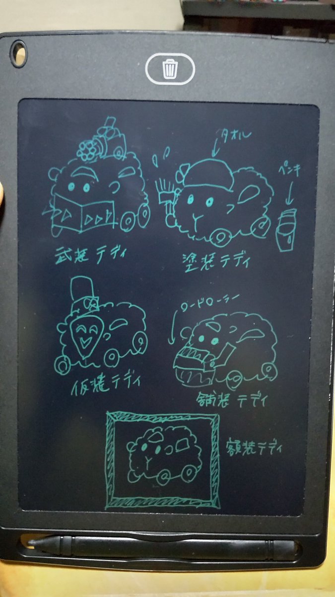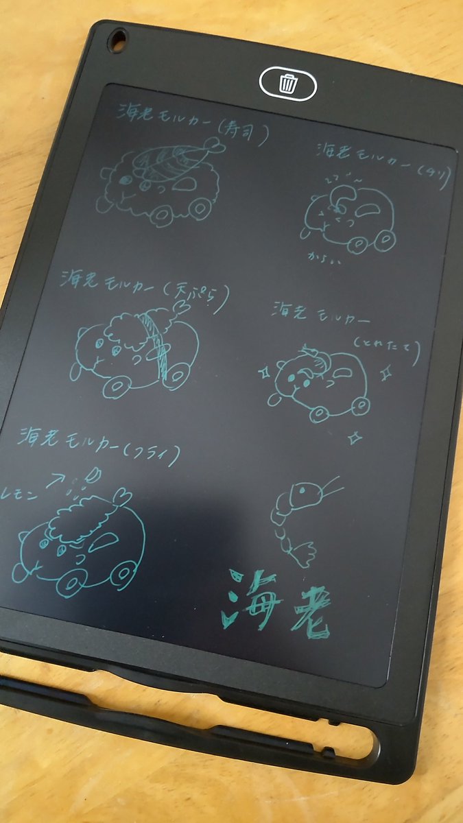 100均の電子メモパッド買ってご機嫌。保存はできない。かなしみ。 #モルカー #モルカーファンアート