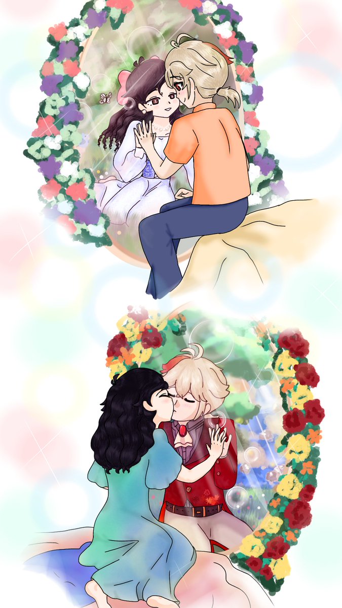"🌸 🌿 When beauty is in the eyes of beloved 🌸 🌿" (Oc X Canon fanart) #genshinimpactfanart #kazuhafanart #KaedeharaKazuha #Ocxcanon