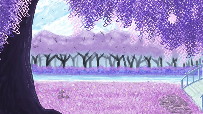 "A Purple Scenery💜🌸🌿" (drawn in ms paint by me 😄and with the guidance of a friend of mine 🫴@ajolomuu ✨) #MSpaint #digitalart #digitalpainting #digitalpaint
