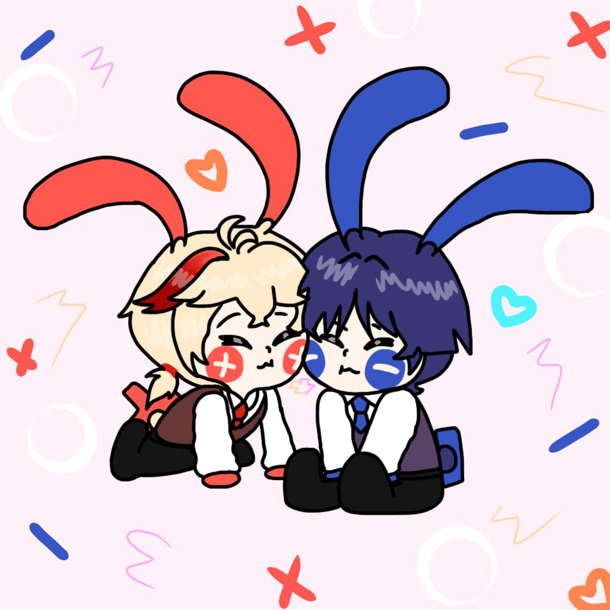 Kazuha🍁 and Scaramouche☂️ as Plusle ➕ and Minun ➖ #kazuhakaedehara #scaramouche #genshinimpactfanart #genshintwt #kazuscara