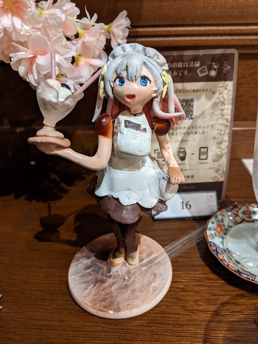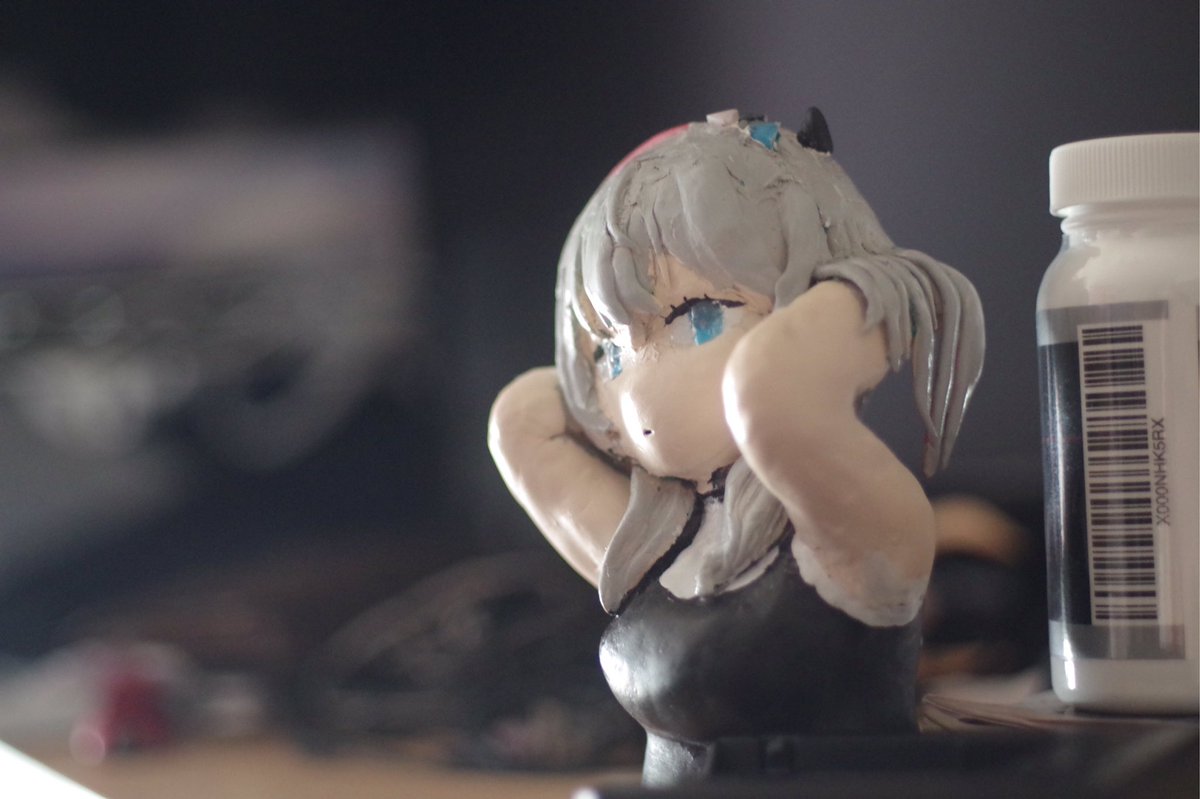 はい。 そういうわけで、結目さんと秋葉原和堂さんのコラボカフェに合わせて以前作った粘土フィギュア改修してきました。前よりも顔かわいくなったんじゃないかと思いますね。 #結目ユイのメルティーパーティーカフェ #ユイアート