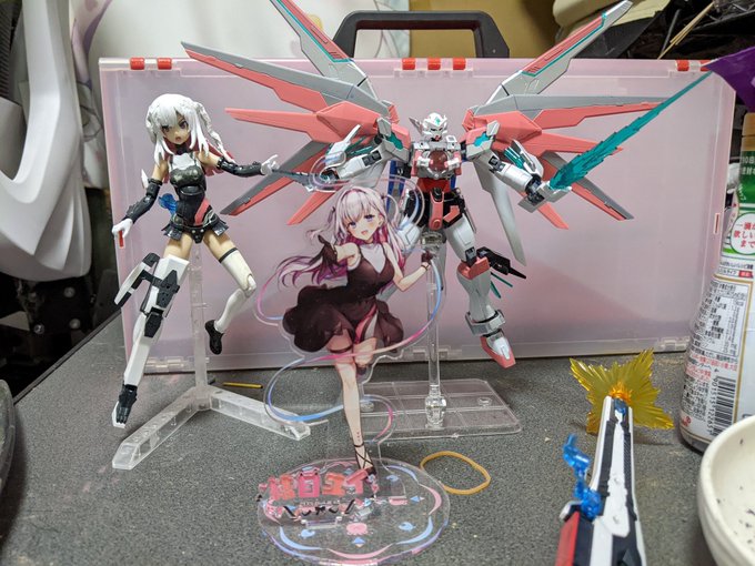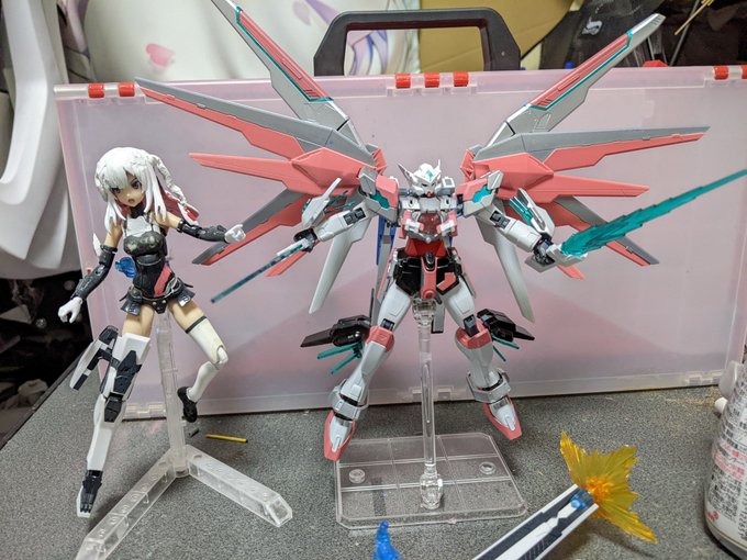 推しの結目ユイカラーのガンプラ作りました。 ガンダムヘリオスをベースにちょびっとだけアストレアのパーツミキシングしてみました。シルバーとピンクを主体にして塗装したけどもっと黒の割合多くても良かったかもしれない #ユイアート #ガンプラはどんな自由な発想で作ってもいいんだ