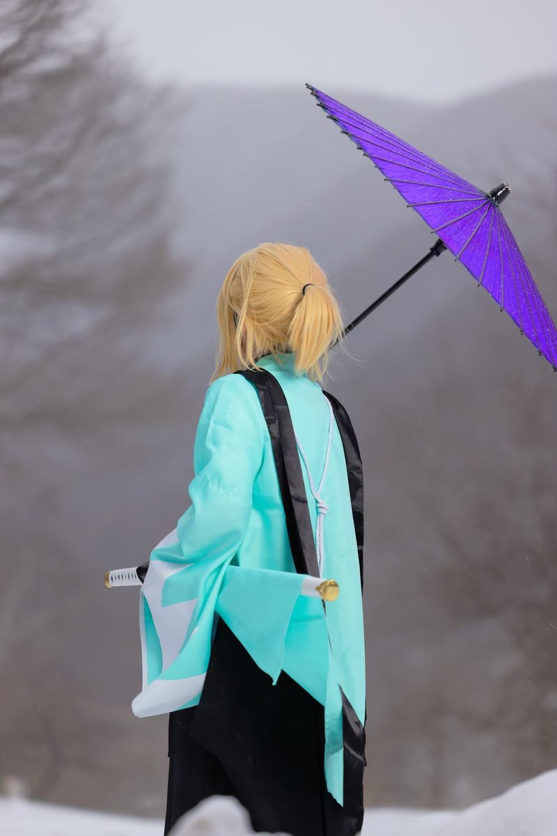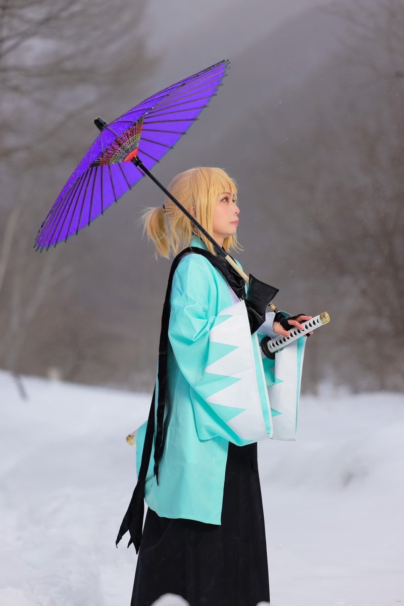 【コスプレcos】FGO 沖田総司 浅葱の羽織袴 「マスター!さあ、行きましょう」 📷雪撮影❄️えーさくさん ※ロケ地許可済み