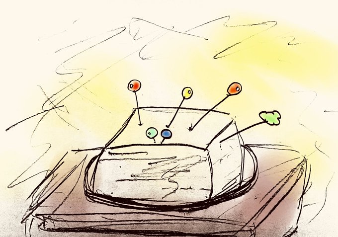 #アート #art #お絵描き #絵 #絵画 #イラスト #イラスト練習 #イラスト初心者 #一日一絵 #アナログ #絵描きさんと繋がりたい #イラスト好きな人と繋がりたい #描いてみた #今日は何の日 手描き+MediBangで塗り 1日1絵 落書き _φ(^^ 本日12月8日は「針供養の日」らしい🥳 お疲れ様