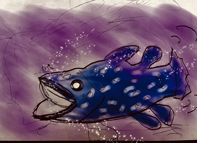 1 35 #アート #art #お絵描き #絵 #絵画 #イラスト #イラスト練習 #イラスト初心者 #一日一絵 #アナログ #絵描きさんと繋がりたい #イラスト好きな人と繋がりたい #描いてみた #今日は何の日 #海 #生物 手描き+MediBangで塗り 1日1絵 落書き _φ(^^ 12月20日は「シーラカンスの日」らしい🥳 憧れの生物 22/12/20 12:37
