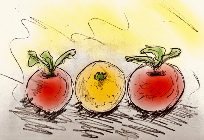 #アート #art #お絵描き #絵 #絵画 #イラスト #イラスト練習 #イラスト初心者 #一日一絵 #アナログ #絵描きさんと繋がりたい #イラスト好きな人と繋がりたい #描いてみた #今日は何の日 手描き+MediBangで塗り 1日1絵 落書き _φ(^^ 12月21日は上から読んでも下から読んでもトマト「回文の日」らしい🥳
