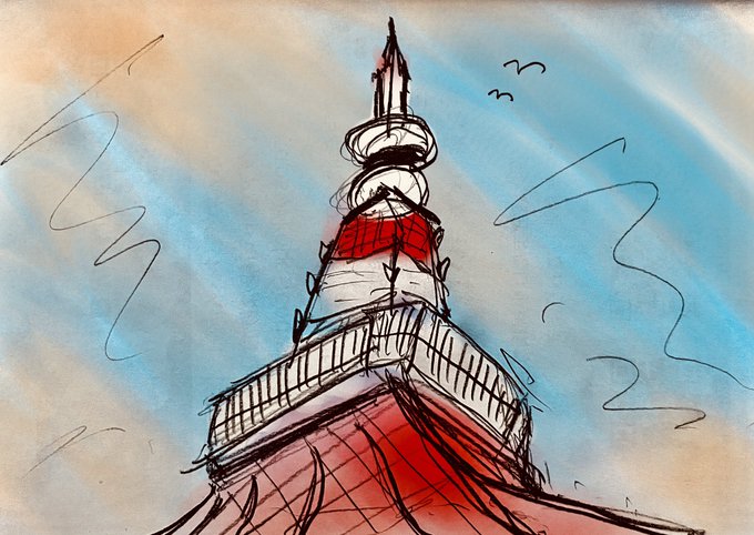 #アート #art #お絵描き #絵 #絵画 #イラスト #イラスト練習 #イラスト初心者 #一日一絵 #アナログ #絵描きさんと繋がりたい #イラスト好きな人と繋がりたい #描いてみた #今日は何の日 #東京 #スポット 手描き+MediBang 1日1絵 落書き _φ(^^ 本日12月23日は東京タワー完成の日らしい。4次元感出た🤣