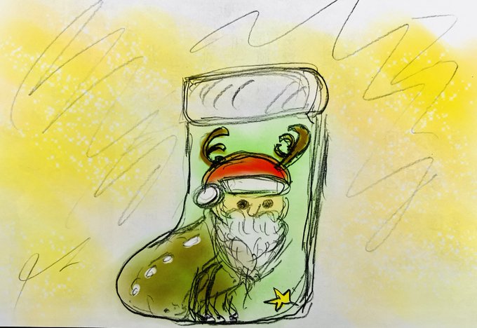 #アート #art #お絵描き #絵 #絵画 #イラスト #イラスト練習 #イラスト初心者 #一日一絵 #アナログ #絵描きさんと繋がりたい #イラスト好きな人と繋がりたい #描いてみた #今日は何の日 手描き+MediBang 1日1絵 落書き _φ(^^ 12月24日はクリスマスイブ🧑🎄 サンタさん、まるでこたつソックス下さい🧦