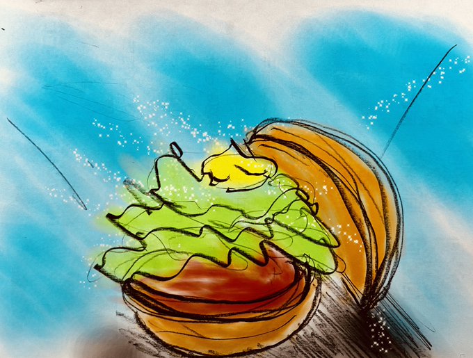 #お絵描き #絵 #イラスト #イラスト練習 #イラスト初心者 #一日一絵 #アナログ #描いてみた #絵描きさんと繋がりたい #イラスト好きな人と繋がりたい #今日は何の日 #鉛筆画 #モスバーガー 鉛筆で手描き+ MediBang 1日1絵の落書き_φ(^^ 水彩風 本日3月12日は #モスの日 らしいよ🥳新鮮レタス🍔